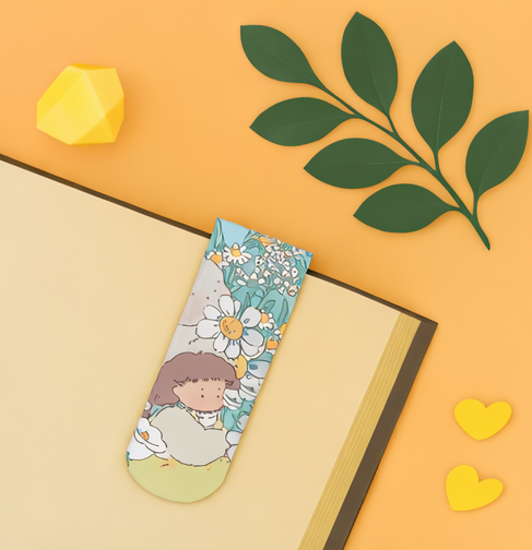 These cute magnetic bookmarks will make sure you never loose your spot in your favourite book. Measuring 3/4" x 4 3/4", they fold nicely in half to fit over a few of pages. They are matte finish.