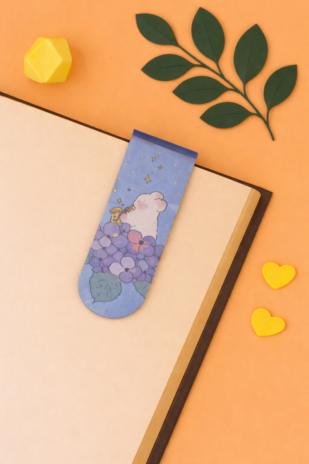 These cute magnetic bookmarks will make sure you never loose your spot in your favourite book. Measuring 3/4" x 4 3/4", they fold nicely in half to fit over a few of pages. They are matte finish.